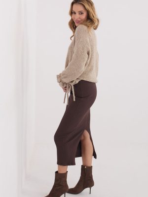 Φούστα από πλεκτό ύφασμα με μήκος μίντι, φτιαγμένη από μαλακό, ριγωτό υλικό που προσφέρει υψηλή άνεση κατά την χρήση. Το μοντέλο σε στυλ casual είναι … Ανακαλύψτε το spódnica.