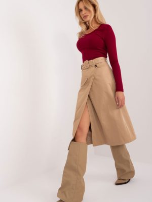 Η φούστα με φάκελο μπροστά είναι ένα μοναδικό κομμάτι της γκαρνταρόμπας που συνδυάζει λειτουργικότητα και στυλ. Θα είναι ιδανική για διάφορες περιστάσεις, από τις καθημερινές συναντήσεις μέχρι τις ημέρες στη δουλειά, προσφέροντας ελευθερία κινήσεων και άνετη χρήση. Κατασκευασμένη κυρίως από βαμβάκι υψηλής ποιότητας, η απαλή αίσθηση της φούστας εξασφαλίζει άνεση όλη την ημέρα. Το υλικό είναι ιδανικό για καθημερινή χρήση, αναδεικνύοντας τον φυσικό χαρακτήρα της φούστας. Η φούστα έχει μήκος midi, το οποίο προσθέτει στην κομψότητά της και την καθιστά κατάλληλη για διάφορες περιστάσεις. Το μπροστινό μέρος με φάκελο της προσδίδει πρωτοτυπία και διακριτική ανεμελιά, ενώ παραμένει ένα κομψό στοιχείο μιας casual γκαρνταρόμπας. Το κούμπωμα με κουμπιά και η ζώνη με αγκράφα τονίζουν τη μέση, προσθέτοντας μια θηλυκή πινελιά στη φούστα. Επιπλέον, η παρουσία φόδρας εξασφαλίζει άνετη εφαρμογή και καλύτερη δομή στη φούστα. Στο μπροστινό μέρος της φούστας υπάρχει ραμμένη τσέπη με μπαλώματα, η οποία προσθέτει πρακτικότητα και επιπλέον γοητεία. Αυτό το διακριτικό διακοσμητικό στοιχείο καθιστά τη φούστα όχι μόνο ένα λειτουργικό αλλά και ένα μοντέρνο μέρος της καθημερινής σας εμφάνισης. Αυτή η φούστα είναι ο τέλειος συνδυασμός κομψότητας και καθημερινότητας, καθιστώντας την ιδανική επιλογή για διάφορες περιστάσεις, από συναντήσεις με φίλους μέχρι μέρες στη δουλειά.