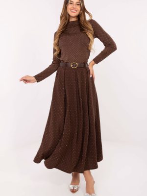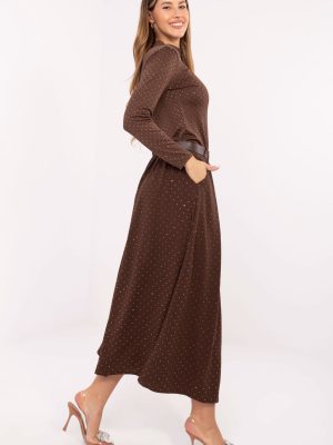 Η κομψή, μακριά φούστα maxi είναι συνδυασμός άνεσης και εκλεπτυσμένου στυλ, ιδανική για καθημερινές εξόδους, για δουλειά ή για επίσημες περιστάσεις. Κατασκευασμένη από υψηλής ποιότητας μείγμα πολυεστέρα και βισκόζ, η φούστα προσφέρει ελαφρότητα και άνεση κατά τη διάρκεια της χρήσης, ενώ παράλληλα έχει κομψή εμφάνιση που ταιριάζει σε κάθε περίσταση. Στο πίσω μέρος της μέσης υπάρχει ραμμένο λάστιχο, το οποίο εγγυάται εξαιρετική εφαρμογή και άνεση, ενώ η ρυθμιζόμενη ζώνη επιτρέπει την προσαρμογή και επιπλέον τόνωση της μέσης. Το σύνολο είναι διακοσμημένο με διακριτικά στρας που καλύπτουν ολόκληρη την επιφάνεια του υλικού, προσδίδοντας στη φούστα μοναδική λάμψη και πρωτοτυπία. Επιπλέον, οι τσέπες που εισέρχονται είναι ένα πρακτικό στοιχείο, συνδυάζοντας λειτουργικότητα με μοντέρνα εμφάνιση. Είναι εξαιρετική πρόταση για κομψές στυλιστικές προτάσεις που θα ξεχωρίζουν για την απλότητα και την αποτελεσματική λεπτομέρεια. Η φούστα συνδυάζεται εξαιρετικά με κλασικά μπλουζάκια, καθώς και με πιο τολμηρές τοπ, προσφέροντας αμέτρητες δυνατότητες δημιουργίας κομψών αλλά άνετων συνόλων.