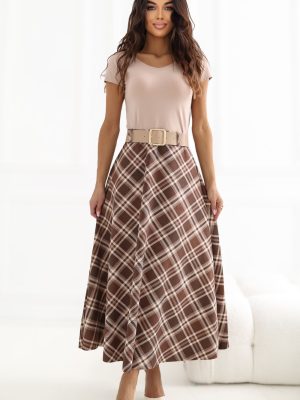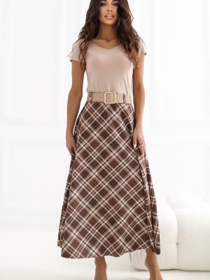 Μια στυλάτη φούστα maxi με κλος σχέδιο, που ταιριάζει τέλεια τόσο σε καθημερινές εμφανίσεις όσο και σε επαγγελματικά σύνολα. Το μοντέλο ξεχωρίζει για το κλασικό καρό σχέδιο του, δίνοντάς του μία κομψή και διαχρονική αίσθηση. Η φούστα διαθέτει άνετο λάστιχο ραμμένο στη μέση, που της επιτρέπει να προσαρμόζεται καλά στην σιλουέτα και να προσφέρει άνεση κατά την διάρκεια της ημέρας. Ένα επιπλέον στοιχείο είναι η ζώνη που κλείνει, η οποία τονίζει τη μέση και αποτελεί μια στυλάτη προσθήκη στο μοντέλο. Το μήκος maxi και το κλος σχέδιο κάνουν τη φούστα να ρέει όμορφα κατά την κίνηση, προσδίδοντας ελαφρότητα και θηλυκή αίσθηση στην εμφάνιση. Φτιαγμένη από ύφασμα που είναι συνδυασμός πολυεστέρα και ελαστάνης, είναι ανθεκτική, ελαφρώς ελαστική και άνετη στη χρήση. Το μοντέλο χωρίς κλείσιμο εξασφαλίζει γρήγορη και εύκολη τοποθέτηση.