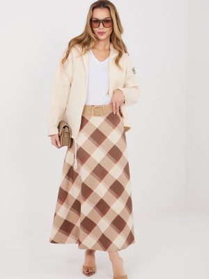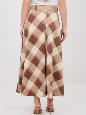 Μια στυλάτη φούστα maxi με φαρδιά γραμμή, η οποία είναι ιδανική τόσο για καθημερινές εμφανίσεις όσο και για επαγγελματικές συνθέσεις. Το μοντέλο ξεχωρίζει για το κλασικό καρό σχέδιο που προσδίδει στην όλη εμφάνιση κομψότητα και διαχρονικό χαρακτήρα. Η φούστα διαθέτει άνετη ελαστική ζώνη, η οποία προσαρμόζεται όμορφα στη σιλουέτα και εξασφαλίζει άνεση κατά τη διάρκεια της ημέρας. Ένα επιπλέον στοιχείο είναι η ζώνη που κουμπώνει, η οποία τονίζει τη μέση και αποτελεί ένα στυλάτο συμπλήρωμα του μοντέλου. Το μήκος maxi και ο φαρδύς κόψιμός της κάνουν τη φούστα να ρέει όμορφα κατά την κίνηση, προσδίδοντας στην εμφάνιση ελαφρότητα και γυναικεία αίσθηση. Κατασκευασμένη από ύφασμα που είναι μείγμα πολυεστέρα και ελαστάνης, είναι ανθεκτική, ελαφρώς ελαστική και άνετη στη χρήση. Το μοντέλο χωρίς κούμπωμα εξασφαλίζει ταχεία και εύκολη εφαρμογή.