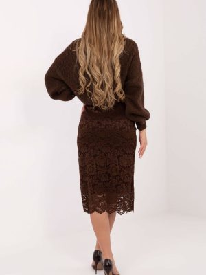 Μια κομψή φούστα από δαντέλα είναι μια στιλάτη πρόταση που είναι ιδανική τόσο για καθημερινή χρήση, όσο και για επαγγελματικές ή επίσημες περιστάσεις. Ο ιδιαίτερος χαρακτήρας της τονίζεται από την ποικιλόμορφη υφή του υλικού, που προσφέρει σε όλη τη φούστα μια διακριτική, γυναικεία ελαφρότητα. Το μοντέλο μήκους μίντι φαίνεται πολύ κομψό και ευέλικτο, ενώ η επένδυση εξασφαλίζει άνεση κατά την φθορά και πλήρη ελευθερία κινήσεων. Στη μέση υπάρχει ραμμένο λάστιχο, που επιτρέπει στη φούστα να προσαρμόζεται τέλεια στη σιλουέτα και είναι άνετη όλη την ημέρα. Η απουσία κλεισίματος την καθιστά εξαιρετικά πρακτική και εύκολη στην τοποθέτηση. Είναι ένα διαχρονικό στοιχείο της γκαρνταρόμπας που θα συμπληρώσει υπέροχα τις κομψές εμφανίσεις.
