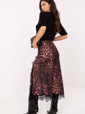 Η κομψή σατέν φούστα είναι μια κομψή πρόταση που ταιριάζει τέλεια τόσο σε καθημερινές εμφανίσεις όσο και σε επίσημες περιστάσεις και για δουλειά. Το εντυπωσιακό ζώο μοτίβο προσδίδει έντονο, μοντέρνο χαρακτήρα, υπογραμμίζοντας το ατομικό στυλ. Το μοντέλο διαθέτει ελαστική ζώνη στη μέση, που εξασφαλίζει άνεση και τέλεια εφαρμογή στην σιλουέτα. Το άνοιγμα στο μπροστινό μέρος που φτάνει μέχρι το μηρό εκθέτει λεπτεπίλεπτα το πόδι, προσθέτοντας συνολικά μια θηλυκή ελαφρότητα και κομψότητα. Το σύνολο έχει τελειώσει με λεπτό στρίφωμα από δαντέλα, το οποίο αποτελεί μια μοναδική, διακοσμητική πινελιά. Η φούστα είναι κατασκευασμένη από υψηλής ποιότητας μείγμα πολυεστέρα, βισκόζης και ελαστάνης, έτσι ώστε το ύφασμα να είναι ελαφρύ, ευχάριστο στην αφή και ελαφρώς ελαστικό. Η έλλειψη κλεισίματος υπογραμμίζει τη μινιμαλιστική μορφή και την άνεση στη χρήση.