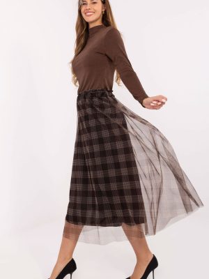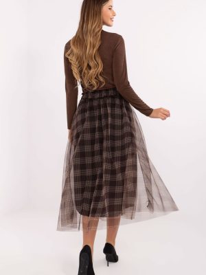 Η στιλάτη φούστα από τούλι με φαρδιά γραμμή συνδυάζει την κομψότητα και τη γυναικεία γοητεία. Κατασκευασμένη από υψηλής ποιότητας μείγμα πολυεστέρα και ελαστάνης, είναι ελαφριά, ανθεκτική και άνετη στη χρήση. Το μοντέλο διαθέτει επένδυση, που της επιτρέπει να στέκεται τέλεια και προσφέρει πλήρη άνεση. Το καρό μοτίβο δίνει στη φούστα μια διαχρονική αίσθηση, ενώ η λεπτή στρώση τούλι προσθέτει ελαφρότητα και λεπτό ρομαντισμό. Στη μέση υπάρχει ραμμένο λάστιχο, που διευκολύνει την τοποθέτηση και προσαρμόζει τέλεια τη φούστα στη σιλουέτα. Η φούστα midi μήκους είναι ιδανική για κομψές, επίσημες εμφανίσεις, καθώς και για πιο καθημερινές ή επαγγελματικές συνθέσεις. Είναι η ιδανική επιλογή για γυναίκες που εκτιμούν το στυλ, την άνεση και την πρωτοτυπία.