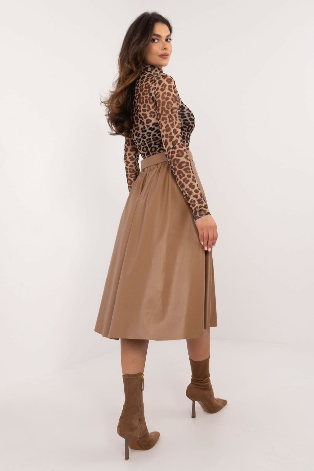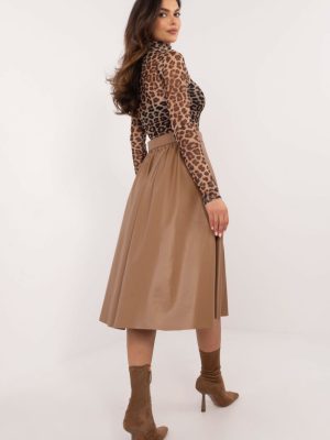Αυτή η μοναδική φούστα είναι ο τέλειος συνδυασμός του κλασικού και του μοντέρνου. Το φαρδύ κόψιμο τονίζει όμορφα τη σιλουέτα, ενώ το απομίμηση δέρματος προσθέτει μια κομψή πινελιά. Το λείο υλικό και η έλλειψη περιττών διακοσμητικών στοιχείων καθιστούν τη φούστα εξαιρετικά ευέλικτη. Ιδανική τόσο για τη δουλειά όσο και για συναντήσεις με φίλους. Η ελαστική ζώνη στη μέση εξασφαλίζει άνετη χρήση καθ’ όλη τη διάρκεια της ημέρας. Αυτή η φούστα είναι μια επένδυση στην γκαρνταρόμπα σας. Το ευέλικτο κόψιμό της και το κομψό της ύφασμα θα σας κάνουν να νιώθετε αυτοπεποίθηση και στυλ σε κάθε περίσταση.