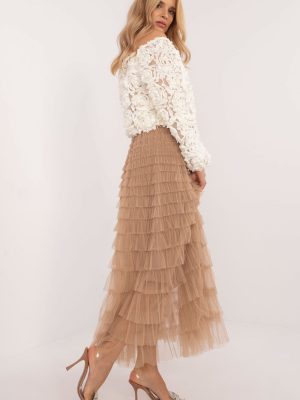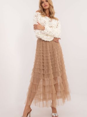 Αυτή η κομψή τούλινη φούστα με βολάν είναι μια κομψή επιλογή τόσο για τις καθημερινές εξόδους, όσο και για την εργασία και τις επίσημες περιστάσεις ή εκδηλώσεις. Κατασκευασμένη από ελαφρύ πολυεστέρα, διαθέτει μονόχρωμο μοτίβο και μήκος midi για μια θηλυκή και κομψή εμφάνιση. Τα λεπτά βολάν προσθέτουν μια ρομαντική πινελιά στη φούστα και τονίζουν το κομψό της στυλ. Η έλλειψη στερέωσης και η ελαστική ζώνη στη μέση την καθιστούν άνετη στη χρήση, ενώ η φόδρα εγγυάται άνεση και αποτρέπει κάθε διάφανη διαφάνεια. Πρόκειται για μια μοναδική φούστα που συνδυάζει τη διακριτική κομψότητα με την πρακτικότητα, ιδανική για διάφορες περιστάσεις.