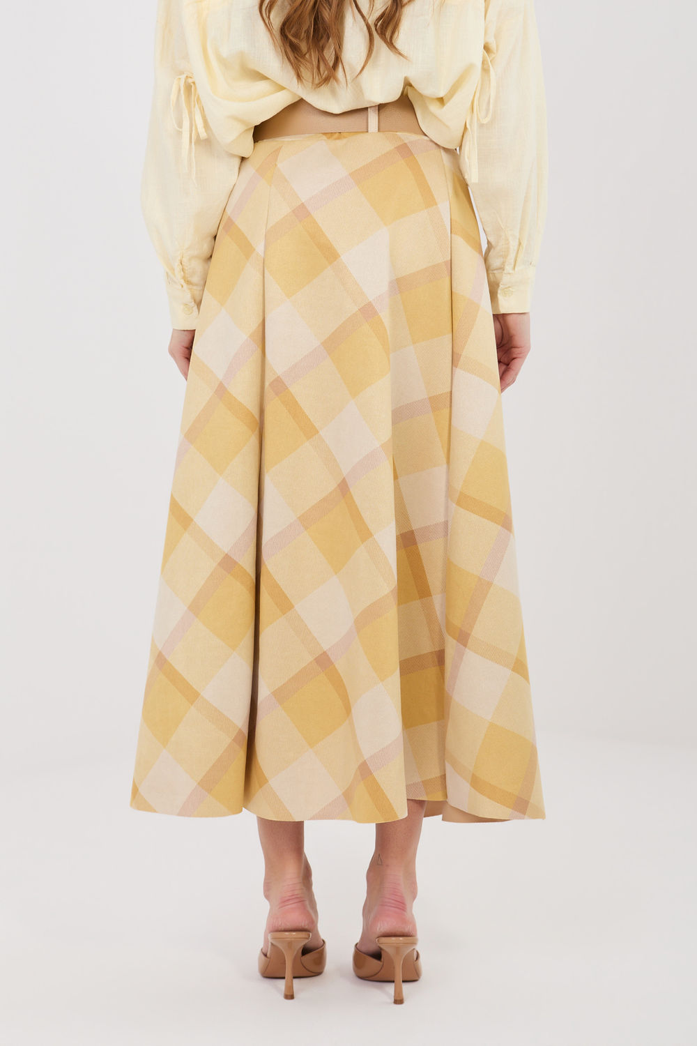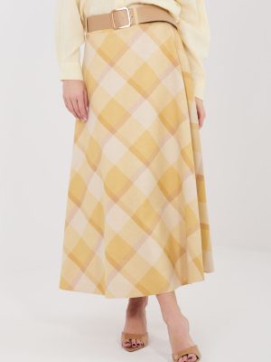 Μια στυλάτη maxi φούστα με φαρδιά γραμμή, ιδανική τόσο για καθημερινές εμφανίσεις όσο και για επαγγελματικά outfits. Το μοντέλο ξεχωρίζει για το κλασικό καρό σχέδιο, που προσδίδει στο σύνολο μια κομψή και διαχρονική αίσθηση. Η φούστα διαθέτει άνετη ελαστική ζώνη στη μέση, η οποία εξασφαλίζει καλή εφαρμογή στο σώμα και άνεση κατά τη διάρκεια της ημέρας. Ένα επιπλέον στοιχείο είναι η ζώνη με κούμπωμα, που τονίζει τη μέση και αποτελεί στυλάτη συμπλήρωση του μοντέλου. Το maxi μήκος και η φαρδιά γραμμή κάνουν τη φούστα να ρέει όμορφα κατά την κίνηση, προσδίδοντας ελαφρότητα και θηλυκή αίσθηση στην εμφάνιση. Κατασκευασμένη από υλικό που αποτελεί συνδυασμό πολυεστέρα και ελαστάνης, είναι ανθεκτική, ελαφρώς ελαστική και άνετη στη χρήση. Το μοντέλο χωρίς κούμπωμα διασφαλίζει γρήγορη και εύκολη τοποθέτηση.