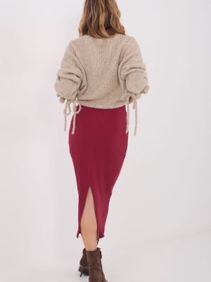Φούστα midi από ύφασμα jersey, κατασκευασμένη από μαλακό, ριγωτό υλικό που προσφέρει υψηλή άνεση κατά τη διάρκεια της φθοράς. Το μοντέλο είναι σε casual στυλ, ιδανικό και για καθημερινές εμφανίσεις, καθώς και ως στοιχείο ενδυμασίας για το γραφείο. Η ομαλή σχέδια της δίνει έναν καθολικό χαρακτήρα και διευκολύνει την προσφορά με διάφορους τύπους μπλουζών ή πουλόβερ. Στο πίσω μέρος, στο κάτω μέρος, υπάρχει μια πρακτική σχισμή που τονίζει τη σιλουέτα και προσφέρει ελευθερία κινήσεων. Η φούστα έχει ραφτεί από βαμβάκι με προσθήκη ελαστάνης, καθιστώντας την ελαστική, ευχάριστη στην αφή και καλά προσαρμοσμένη στη σιλουέτα. Η απουσία κλεισίματος τονίζει την απλή, άνετη μορφή του μοντέλου.