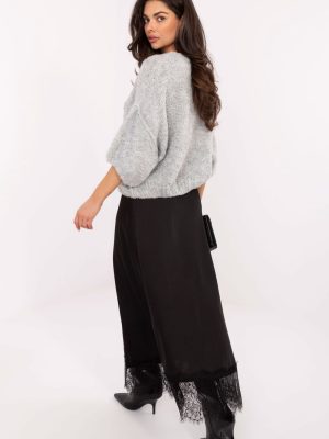 Η κομψή μακριά σατέν φούστα αποτελεί την ενσάρκωση της θηλυκότητας και της διακριτικής κομψότητας. Κατασκευασμένη από ελαφρώς γυαλιστερό ύφασμα με ομαλή υφή, ακολουθεί υπέροχα τη σιλουέτα και προσθέτει σε κάθε εμφάνιση κλασική γοητεία. Στη μέση, μια ελαστική ζώνη εξασφαλίζει τέλεια εφαρμογή και άνεση στην εφαρμογή, ενώ η απουσία κλεισίματος καθιστά το μοντέλο ιδιαίτερα άνετο και πρακτικό. Η κάτω πλευρά της φούστας διακοσμείται με λεπτό δαντέλα, που προσδίδει συνολικά έναν ρομαντικό και κομψό χαρακτήρα. Το μήκος maxi οπτικά επιμηκύνει τη σιλουέτα, τονίζοντας την κομψότητά της. Η φούστα είναι ιδανική τόσο για καθημερινές εμφανίσεις, για τη δουλειά, όσο και για επισκέψεις ή επίσημες περιστάσεις, απλώς αλλάζοντας τα αξεσουάρ για να αποκτήσετε εντελώς διαφορετικό αποτέλεσμα.