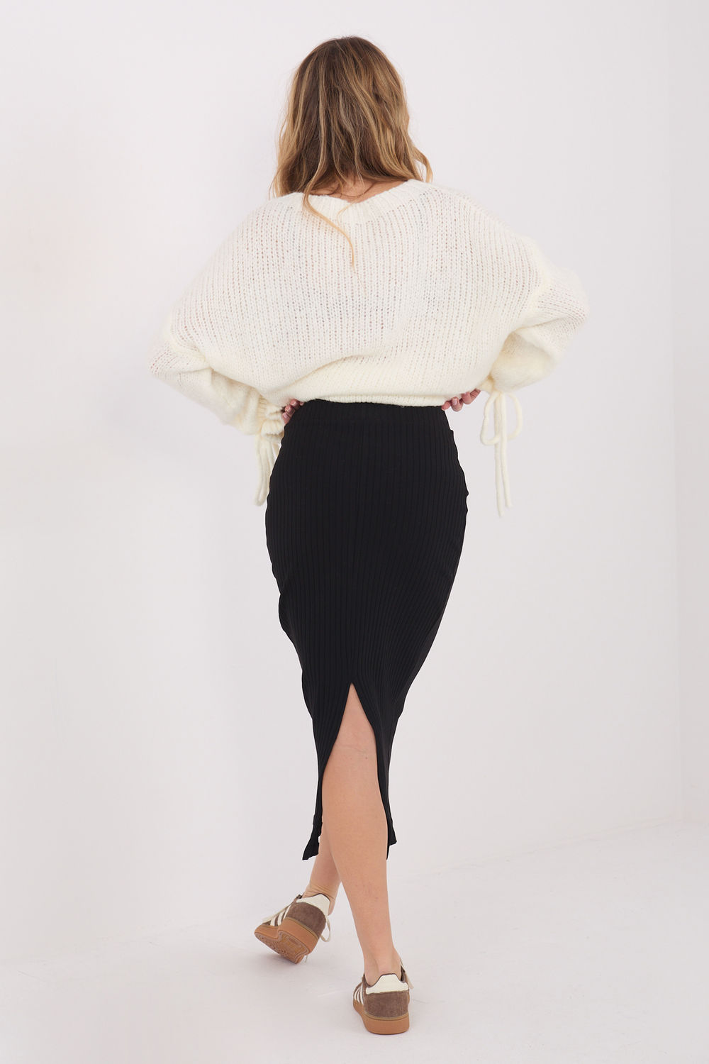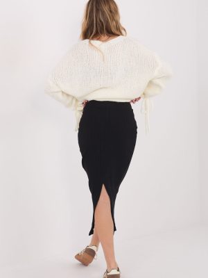 Φούστα midi φτιαγμένη από μαλακό, ραμμένο ύφασμα που εξασφαλίζει υψηλή άνεση κατά την χρήση. Το μοντέλο σε casual στυλ είναι ιδανικό για καθημερινές εμφανίσεις, καθώς και ως στοιχείο ενδυμασίας για το γραφείο. Το ομαλό σχέδιο της προσδίδει έναν καθολικό χαρακτήρα και διευκολύνει την συνδυαστική χρήση με διάφορους τύπους μπλουζών ή πουλόβερ. Στο πίσω μέρος της, στο κάτω μέρος υπάρχει μια πρακτική σχισμή, που τονίζει τη σιλουέτα και εξασφαλίζει ελευθερία κινήσεων. Η φούστα έχει ραφτεί από βαμβάκι με προσθήκη ελαστάνης, γι’ αυτό είναι ελαστική, ευχάριστη στην αφή και προσαρμόζεται καλά στη σιλουέτα. Η απουσία κλεισίματος τονίζει την απλή, άνετη μορφή του μοντέλου.