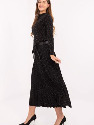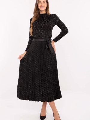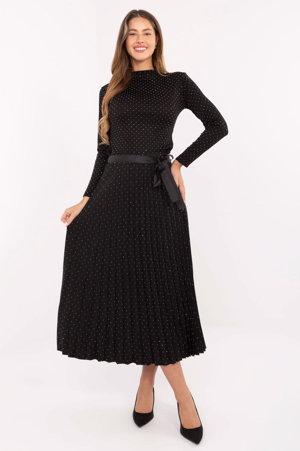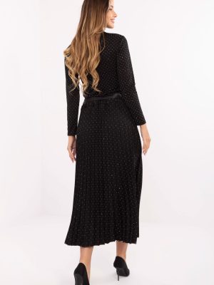 Μια στυλάτη και γυναικεία πλισέ φούστα μήκους μίντι, κατασκευασμένη από υψηλής ποιότητας βισκόζα με προσθήκη ελαστάνης, που εξασφαλίζει ελαφρότητα, αναπνοή και άνεση στη φόρμα. Το μοντέλο διαθέτει ελαστική ζώνη στη μέση, επιτρέποντας να ταιριάζει τέλεια στη σιλουέτα και χωρίς να χρειάζεται κλείσιμο. Ένα επιπλέον πλεονέκτημα είναι η ζώνη σε μορφή κορδέλας που δίνει έμφαση στη μέση και προσφέρει στην εμφάνιση κομψό χαρακτήρα. Όλη η επιφάνεια του υλικού διακοσμείται από λαμπερά στρας, που ανακλούν υπο subtly το φως, προσθέτοντας στη φούστα μια μοναδική γοητεία και στυλ. Είναι μια εξαιρετική πρόταση για επίσημες περιστάσεις, οικογενειακές συναντήσεις ή κομψές εξόδους πάντα όταν θέλετε να φαίνεστε στυλάτοι και με κύρος.