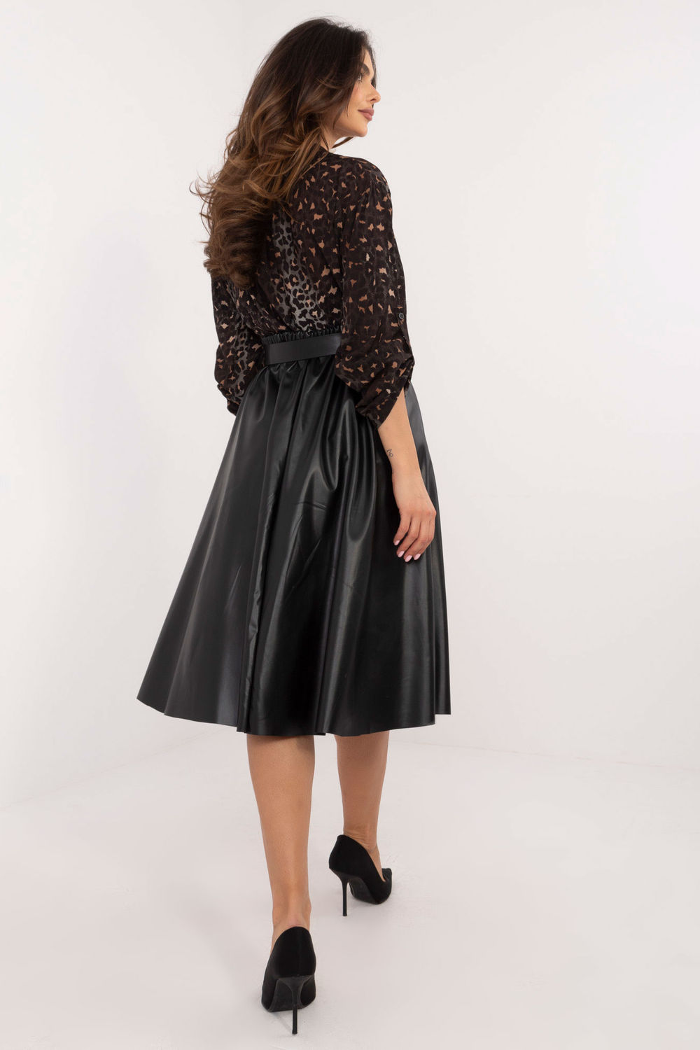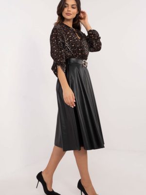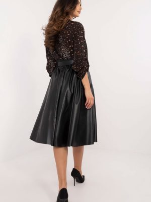 Αυτή η μοναδική φούστα είναι ο τέλειος συνδυασμός του κλασικού και του μοντέρνου. Το φαρδύ κόψιμο τονίζει όμορφα τη σιλουέτα, ενώ το απομίμηση δέρματος προσθέτει μια κομψή πινελιά. Το λείο υλικό και η έλλειψη περιττών διακοσμητικών στοιχείων καθιστούν τη φούστα εξαιρετικά ευέλικτη. Ιδανική τόσο για τη δουλειά όσο και για συναντήσεις με φίλους. Η ελαστική ζώνη στη μέση εξασφαλίζει άνετη χρήση καθ’ όλη τη διάρκεια της ημέρας. Αυτή η φούστα είναι μια επένδυση στην γκαρνταρόμπα σας. Το ευέλικτο κόψιμό της και το κομψό της ύφασμα θα σας κάνουν να νιώθετε αυτοπεποίθηση και στυλ σε κάθε περίσταση.
