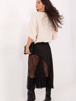 Η κομψή και θηλυκή φούστα midi έχει στυλ που συνδυάζει την κομψότητα και την άνεση. Κατασκευασμένη από ύφασμα με λεία υφή, εφαρμόζει πανέμορφα στη σιλουέτα, προσθέτοντας ελαφρότητα και υποδειγματική χάρη. Στη μέση διαθέτει ελαστική ζώνη που εξασφαλίζει τέλεια εφαρμογή και άνεση καθόλη τη διάρκεια της ημέρας. Η απουσία κλεισίματος καθιστά τη φούστα εξαιρετικά πρακτική και άνετη στη χρήση. Ένα εξαιρετικό στοιχείο αυτού του μοντέλου είναι η δαντελένια σφήνα στη αριστερή πλευρά, που εκθέτει διακριτικά το πόδι και προσθέτει συνολικά μια κομψή, θηλυκή διάθεση. Το μήκος midi καθιστά τη φούστα ιδανική για διάφορες περιστάσεις, από καθημερινές και επαγγελματικές έως επίσημες συναντήσεις και πάρτι.