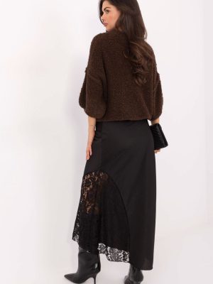 Ένας κομψός φούστα σε σχήμα γοργόνας κατασκευασμένη από ύφασμα με ποικιλόμορφη υφή είναι η ιδανική επιλογή τόσο για καθημερινή χρήση όσο και για πιο επίσημες περιστάσεις. Ραμμένη από υψηλής ποιότητας μείγμα πολυεστέρα, βισκόζης και ελαστάνης, πέφτει όμορφα πάνω στη σιλουέτα, αναδεικνύοντας τις γυναικείες καμπύλες. Στη μέση, έχει ραμμένο ελαστικό λάστιχο που εξασφαλίζει άνεση κατά τη διάρκεια της χρήσης και τέλεια εφαρμογή χωρίς την ανάγκη κουμπώματος. Η απουσία κουμπώματος καθιστά τη φούστα εξαιρετικά άνετη και εύκολη στην τοποθέτηση. Η λεπτή δαντελένια λεπτομέρεια στην αριστερή πλευρά στο κάτω μέρος προσθέτει μια διακριτική, γυναικεία νότα και αναδεικνύει το κομψό στυλ του μοντέλου. Το μήκος midi και η ελαφρώς φαρδιά βάση σε σχήμα γοργόνας καθιστούν τη φούστα ιδανική για να συνδυαστεί τόσο με πουκάμισο για τη δουλειά όσο και με μια κομψή μπλούζα για συναντήσεις ή κοινωνικές εκδηλώσεις.