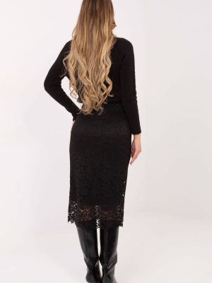 Η κομψή φούστα από δαντέλα είναι μια στυλάτη πρόταση, ιδανική τόσο για καθημερινές εμφανίσεις, όσο και για επαγγελματικές ή επίσημες περιστάσεις. Ο ιδιαίτερος χαρακτήρας της τονίζεται από την ποικιλόμορφη υφή του υλικού, που προσφέρει μια διακριτική, θηλυκή ελαφρότητα. Το μοντέλο σε μήκος μίντι παρουσιάζεται πολύ κομψά και είναι ευέλικτο, ενώ η επένδυση εξασφαλίζει άνεση στη φθορά και πλήρη ελευθερία κινήσεων. Στη μέση υπάρχει ραμμένη ελαστική ταινία, γεγονός που επιτρέπει στη φούστα να προσαρμόζεται τέλεια στη σιλουέτα και να είναι άνετη όλη την ημέρα. Η απουσία κλεισίματος την καθιστά εξαιρετικά πρακτική και εύκολη στην εφαρμογή. Είναι ένα διαχρονικό στοιχείο της γκαρνταρόμπας που θα συμπληρώσει υπέροχα τις κομψές στυλιστικές επιλογές.