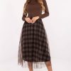 Η στυλάτη φούστα από τούλι με φαρδύ σχέδιο είναι συνδυασμός κομψότητας και θηλυκού γοητείας. Κατασκευασμένη από υψηλής ποιότητας μείγμα πολυεστέρα και ελαστάνης, είναι ελαφριά, ανθεκτική και άνετη στην τοποθέτηση. Το μοντέλο διαθέτει φόδρα, χάρη στην οποία εφαρμόζει τέλεια και προσφέρει πλήρη άνεση. Το καρό σχέδιο προσδίδει στη φούστα διαχρονικό χαρακτήρα, ενώ η λεπτή στρώση τούλι προσθέτει ελαφρότητα και υποκριτικό ρομαντισμό. Στη μέση υπάρχει ραμμένο λάστιχο, το οποίο διευκολύνει την τοποθέτηση και προσαρμόζει ιδανικά τη φούστα στη σιλουέτα. Η φούστα μήκους midi είναι ιδανική τόσο για κομψές, επίσημες εμφανίσεις όσο και για πιο καθημερινές ή γραφειακές συνθέσεις. Είναι η ιδανική επιλογή για γυναίκες που εκτιμούν το στυλ, την άνεση και την πρωτοτυπία.
