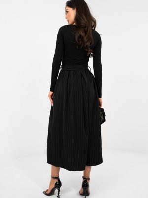 Η κομψή μίντι φούστα με φουσκωτό σχέδιο είναι μια εξαιρετική επιλογή για τις γυναίκες που εκτιμούν την κλασική αισθητική με μια δόση μοντερνισμού. Το μοντέλο με ψηλή μέση υπογραμμίζει όμορφα τη μέση, ενώ το ραμμένο λάστιχο στη μέση διασφαλίζει την ιδανική εφαρμογή και την άνεση της χρήσης όλη την ημέρα. Η φούστα έχει κατασκευαστεί από ύφασμα με ρίγες, το οποίο προσθέτει στυλ και οπτικά αδυνατίζει τη σιλουέτα. Στη συσκευασία περιλαμβάνεται και μια προσαρμοσμένη ζώνη για δέσιμο, που επιτρέπει την καλύτερη ανάδειξη της μέσης και προσθέτει μια προσωπική πινελιά στην εμφάνιση. Οι πρακτικές τσέπες ενισχύουν τη λειτουργικότητα του μοντέλου. Ραμμένη από ένα μείγμα πολυεστέρα, βισκόζης και ελαστάνης, συνδυάζει την ανθεκτικότητα με την απαλότητα και την ελαστικότητα, εξασφαλίζοντας άνεση και κομψή εμφάνιση τόσο σε επαγγελματικές εμφανίσεις όσο και σε ειδικές περιστάσεις.
