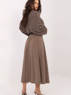 Μια στιλάτη και γυναικεία πλεκτή φούστα midi, κατασκευασμένη από πλεκτό υλικό με ποικιλία υφής. Χάρη στο μείγμα πολυεστέρα και ελαστάνης, το μοντέλο είναι ελαστικό, ευχάριστο στην αφή και προσαρμόζεται τέλεια στη σιλουέτα, διατηρώντας την κομψή εμφάνιση καθ’ όλη τη διάρκεια της ημέρας. Στη μέση έχει ραμμένη μία άνετη ελαστική ταινία που εξασφαλίζει άνετη φ wearing και τέλεια εφαρμογή χωρίς την ανάγκη χρήσης κλεισίματος, η φούστα είναι εντελώς χωρίς κλείσιμο. Ένα επιπλέον πλεονέκτημα είναι η κλειστή ζώνη που τονίζει τη μέση και προσθέτει στην όλη εμφάνιση έναν στιλάτο, προσεγμένο χαρακτήρα. Η κυρίαρχη υφή του υλικού καθιστά τη φούστα εντυπωσιακή, ενώ ταυτόχρονα διατηρεί μια κλασική, κομψή μορφή, κατάλληλη τόσο για τη δουλειά όσο και για επίσημες περιστάσεις. Ιδανική πρόταση για γυναίκες που εκτιμούν την κομψότητα συνδυασμένη με άνεση και στιλάτο φινίρισμα.