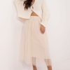 Αυτή η κομψή τούλινη φούστα με βολάν είναι μια κομψή επιλογή τόσο για τις καθημερινές εξόδους, όσο και για την εργασία και τις επίσημες περιστάσεις ή εκδηλώσεις. Κατασκευασμένη από ελαφρύ πολυεστέρα, διαθέτει μονόχρωμο μοτίβο και μήκος midi για μια θηλυκή και κομψή εμφάνιση. Τα λεπτά βολάν προσθέτουν μια ρομαντική πινελιά στη φούστα και τονίζουν το κομψό της στυλ. Η έλλειψη στερέωσης και η ελαστική ζώνη στη μέση την καθιστούν άνετη στη χρήση, ενώ η φόδρα εγγυάται άνεση και αποτρέπει κάθε διάφανη διαφάνεια. Πρόκειται για μια μοναδική φούστα που συνδυάζει τη διακριτική κομψότητα με την πρακτικότητα, ιδανική για διάφορες περιστάσεις.