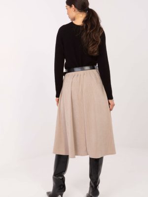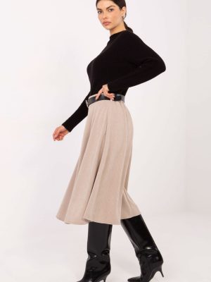 Μια στιλάτη και θηλυκή φούστα που φουσκώνει από πλέγμα, ιδανική για καθημερινές εμφανίσεις, για τη δουλειά καθώς και για πιο επίσημες περιστάσεις. Κατασκευασμένη από μίγμα polyester και elastan, προσφέρει άνεση, ελαστικότητα και όμορφη κίνηση του υλικού. Το πλέγμα είναι ραβδωτό, δίνοντας μια μοναδική, ποικιλόμορφη υφή και λεπτό χαρακτήρα. Η φούστα έχει μήκος μέχρι το γόνατο, καθιστώντας την κομψή και κλασική. Η απουσία παραδοσιακού κλεισίματος προσφέρει άνεση στη φόρμα και ιδανική προσαρμογή στη μέση. Ένα επιπλέον πλεονέκτημα είναι η ζώνη που κουμπώνει, η οποία τονίζει τη μέση και προσθέτει μια κομψή υφή. Κλασική, άνετη και θηλυκή, αποτελεί ιδανική βάση για πολλές κομψές και καθημερινές στυλιστικές επιλογές.