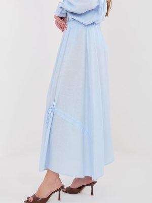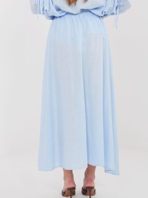 Μακριά γυναικεία φούστα σε casual στιλ, ιδανική για καθημερινές εμφανίσεις. Το απαλό σχέδιό της την καθιστά ευέλικτη και εύκολη στο συνδυασμό με διάφορα κομμάτια της γκαρνταρόμπας, από ελαφριά μπλουζάκια έως κλασικά πουκάμισα ή τοπ. Το μοντέλο έχει κατασκευαστεί από μείγμα υψηλής ποιότητας λιοσελιού, βαμβακιού και λινά, με αποτέλεσμα το ύφασμα να είναι ελαφρύ, αεράτο και ευχάριστο στην καθημερινή χρήση. Τα φυσικά νήματα εξασφαλίζουν ότι η φούστα είναι ιδανική ειδικά τις πιο ζεστές μέρες, προσφέροντας άνεση καθ’ όλη τη διάρκεια της ημέρας. Η φούστα διαθέτει ελαστική φάσα ραμμένη στη μέση, που εγγυάται άνετη εφαρμογή στο σώμα και ελευθερία κινήσεων. Η απουσία κλασικού κλεισίματος καθιστά το μοντέλο εύκολο και γρήγορο στο φόρεμα. Οι διακοσμητικές ζώνες μπροστά προσθέτουν μια λεπτή, γυναικεία αίσθηση και συνιστούν στιλιστική πινελιά στο φινίρισμα.