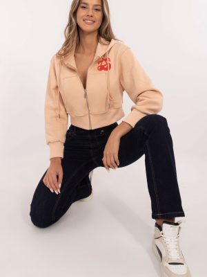Αυτό το γυναικείο κοντό φούτερ σε casual στυλ είναι η ιδανική επιλογή για καθημερινό στυλ. Κατασκευασμένο από μείγμα βαμβακιού/πολυεστέρα, προσφέρει άνετη εφαρμογή και η εσωτερική μόνωση το καθιστά ιδανικό για τις πιο κρύες μέρες. Η μπλούζα διαθέτει μακριά μανίκια, πρακτική κουκούλα και κλείσιμο με φερμουάρ για εύκολη χρήση. Υπάρχουν βολικές τσέπες στο μπροστινό μέρος, ιδανικές για μικρά αντικείμενα ή για να κρατάτε τα χέρια σας ζεστά. Οι εντυπωσιακές εκτυπώσεις στο μπροστινό μέρος και τα γράμματα στο πίσω μέρος προσθέτουν μια μοντέρνα, δυναμική πινελιά. Πρόκειται για ένα ευέλικτο κομμάτι της γκαρνταρόμπας που συνδυάζει τη λειτουργικότητα με μια μοντέρνα εμφάνιση, ιδανικό για καθημερινή χρήση.