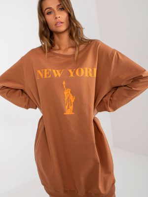 Το γυναικείο oversize φούτερ σε casual στυλ είναι η ιδανική επιλογή για τις γυναίκες που εκτιμούν την άνεση και τη μοντέρνα εμφάνιση. Το φούτερ διαθέτει ένα κυρίαρχο μοτίβο με ένα εντυπωσιακό τύπωμα στο μπροστινό μέρος για μια πινελιά χαρακτήρα. Είναι κατασκευασμένο από υψηλής ποιότητας μείγμα βαμβακιού, πολυεστέρα και ελαστάνης για απαλότητα, ανθεκτικότητα και καλή εφαρμογή. Το μοντέλο με το εκτεταμένο μήκος είναι ιδανικό για καθημερινή χρήση, προσφέροντας άνεση. Τα μακριά μανίκια και η κλασική στρογγυλή λαιμόκοψη τονίζουν τον καθολικό χαρακτήρα της μπλούζας, ενώ η έλλειψη κλεισίματος εγγυάται ελευθερία κινήσεων. Ιδανική με τζιν, κολάν ή casual παντελόνια, αποτελεί must-have σε κάθε γκαρνταρόμπα.