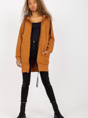 Γυναικείο φούτερ με εκτεταμένο κόψιμο και μακριά μανίκια. Φούτερ με κουκούλα και φερμουάρ. Τσέπες στα πλάγια.
