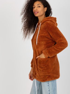 Γούνινο ζεστό φούτερ με φερμουάρ και κουκούλα. Το φούτερ έχει μεγάλες ραμμένες τσέπες.