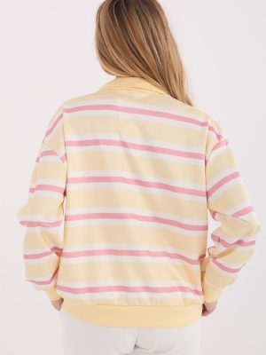 Γυναικεία casual μπλούζα με διαχρονικό και универсальный στυλ, ιδανική για καθημερινές στυλιστικές επιλογές. Το μοντέλο ξεχωρίζει με τη μοντέρνα ριγέ σχεδίαση, η οποία προσθέτει φρεσκάδα και ελαφριά αθλητική αίσθηση. Η μπλούζα έχει κατασκευαστεί από υψηλής ποιότητας βισκόζη με προσθήκη ελαστάνης, που εξασφαλίζει απαλότητα, ελαστικότητα και υψηλή άνεση κατά την χρήση. Η εφαρμογή είναι σε κανονικό μήκος με μακριά μανίκια, που προσαρμόζεται καλά στη σιλουέτα και είναι κατάλληλη για όλη τη σεζόν. Το κούμπωμα με κουμπιά μπροστά τύπου polo σε συνδυασμό με τον κλασικό γιακά προσδίδει στην μπλούζα μία κομψή αλλά ταυτόχρονα άνετη εμφάνιση. Είναι μία εξαιρετική πρόταση για γυναίκες που εκτιμούν την άνεση συνδυασμένη με προσεγμένες λεπτομέρειες. Η μπλούζα ταιριάζει υπέροχα με τζιν, υφασμάτινα παντελόνια ή φούστα, δημιουργώντας στυλάτες κομψές εμφανίσεις για καθημερινή χρήση.