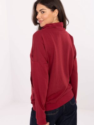 Γυναικεία μπλούζα σε casual στιλ, ιδανική για καθημερινές περιστάσεις. Κατασκευασμένη από μαλακό και ελαστικό μείγμα βαμβακιού με ελαστάνη, διασφαλίζει άνεση και ελευθερία κινήσεων διατηρώντας παράλληλα την αντοχή του υλικού. Το μοντέλο έχει κανονικό μήκος και διαθέτει μακρύ μανίκι και διπλωτό γιακά, που προσθέτει μια υποτονική αίσθηση. Η πρακτική τσέπη τύπου καγκούρω καθιστά την μπλούζα λειτουργική και άνετη στη χρήση. Η λεία υφή την καθιστά ένα καθολικό στοιχείο της γκαρνταρόμπας, εύκολη στη συνδυαστικότητα με άλλα κομμάτια καθημερινών στυλ, από φόρμες μέχρι τζιν.