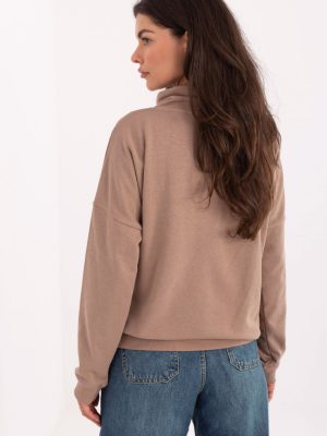 Γυναικεία μπλούζα σε casual στυλ, ιδανική για καθημερινές περιστάσεις. Κατασκευασμένη από μαλακό και ελαστικό μείγμα βαμβακιού με ελαστάνη, εξασφαλίζει άνεση και ελευθερία κινήσεων διατηρώντας την αντοχή του υλικού. Το μοντέλο έχει κανονικό μήκος, διαθέτει μακριά μανίκια και αναδιπλούμενο γιακά, που προσθέτει μια λεπτή αίσθηση στο σύνολο. Η πρακτική τσέπη τύπου καγκουρό καθιστά την μπλούζα λειτουργική και άνετη στην χρήση. Ο συμβατικός σχεδιασμός την καθιστά ένα παγκόσμιο στοιχείο της γκαρνταρόμπας, εύκολα συνδυασμένο με άλλα κομμάτια καθημερινών στυλιστικών επιλογών, από φόρμες μέχρι τζιν.