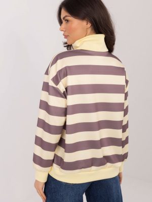 Η γυναικεία μπλούζα με ρίγες είναι μια βολική και στυλάτη πρόταση σε casual στυλ, ιδανική για καθημερινή χρήση. Κατασκευασμένη από μαλακό και ευχάριστο στην αφή υλικό που είναι συνδυασμός βισκόζης και ελαστάνης, εξασφαλίζει άνεση κατά την φορά και ελευθερία κινήσεων καθόλη τη διάρκεια της ημέρας. Το κλασικό σχέδιο με ρίγες δίνει στη μπλούζα έναν διαχρονικό χαρακτήρα και διευκολύνει την προσαρμογή της σε πολλές εμφανίσεις. Το μοντέλο με το κλασικό μήκος και τα μακριά μανίκια είναι ιδανικό για πιο δροσερές ημέρες. Ο γιακάς με τον κοντό φερμουάρ αποτελεί μια πρακτική και στυλάτη λεπτομέρεια, που επιτρέπει τη ρύθμιση του ντεκολτέ σύμφωνα με τις προσωπικές προτιμήσεις. Η μπλούζα δεν διαθέτει επιπλέον κλείσιμο, γεγονός που την καθιστά βολική και εύκολη στην τοποθέτηση. Είναι ένα универсальный элемент της γκαρνταρόμπας που ταιριάζει τέλεια με τζιν, παντελόνια ή κολάν, δημιουργώντας άνετες και μοντέρνες συνθέσεις για καθημερινή χρήση.