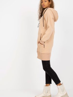 Γυναικείο φούτερ με εκτεταμένο κόψιμο και μακριά μανίκια. Φούτερ με κουκούλα και φερμουάρ. Τσέπες στα πλαϊνά.