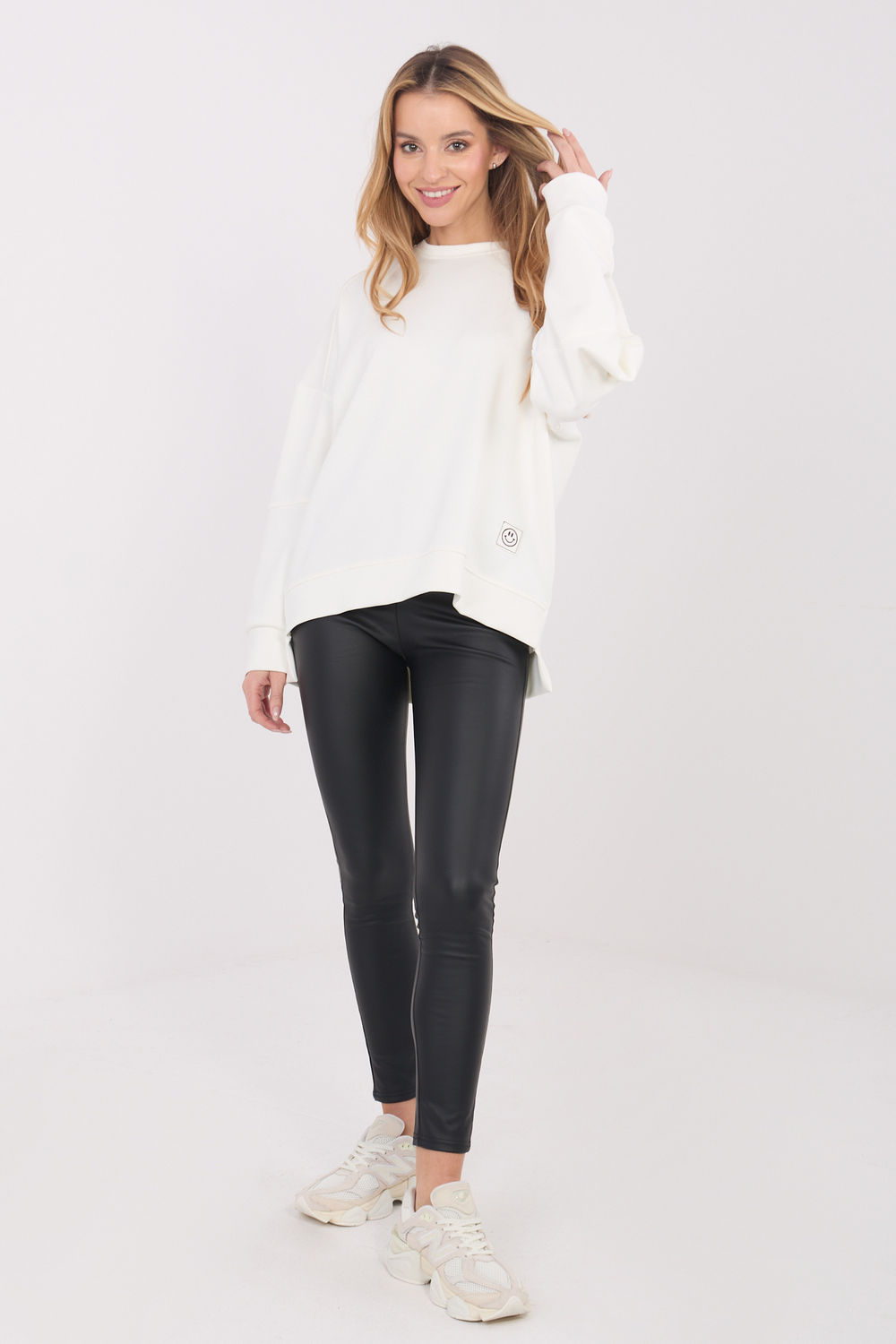Η γυναικεία μπλούζα σε κανονικό στυλ είναι μια άνετη και στιλάτη πρόταση για καθημερινή χρήση. Κατασκευασμένη από ευχάριστο στην αφή βισκόζη με προσθήκη ελαστάνης, προσφέρει άνεση στη χρήση, ελαστικότητα και καλή προσαρμογή στη σιλουέτα. Η ομαλή σχεδίαση υπογραμμίζει τον καθολικό χαρακτήρα της και καθιστά τη μπλούζα ιδανική για συνδυασμούς με πολλά στοιχεία της γκαρνταρόμπας. Το κανονικού μήκους σχέδιο με ελαφρώς παρατεταμένη πλάτη προσδίδει σύγχρονη εμφάνιση και λεπταίνει υπο subtly τη σιλουέτα. Το μακρύ μανίκι και ο στρογγυλός λαιμός εξασφαλίζουν άνεση και ελευθερία κινήσεων. Το μοντέλο είναι χωρίς κλείσιμο, συμπληρωμένο με μια μικρή ραφή στη βάση από την αριστερή πλευρά, που αποτελεί μια λεπτή, μοντέρνα λεπτομέρεια.