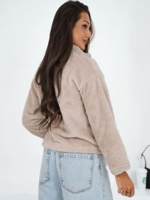 Η casual γυναικεία μπλούζα από μαλακό υλικό τύπου “αρκούδα” είναι μια εξαιρετική επιλογή για καθημερινή χρήση. Κατασκευασμένη από ευχάριστο στην αίσθηση πολυεστέρα, εξασφαλίζει άνεση και ζεστασιά τις ψυχρές μέρες. Το μοντέλο έχει κανονικό μήκος με μακριά μανίκια και διαθέτει πρακτικό γιακά που προστατεύει το λαιμό από το κρύο. Η μπλούζα κλείνει με φερμουάρ, κάτι που αυξάνει την άνεση στη χρήση και επιτρέπει εύκολη προσαρμογή στο στυλ. Το λεία σχέδιο της προσδίδει έναν εξαιρετικά καθολικό χαρακτήρα, ενώ οι τσέπες που ανοίγουν είναι μια λειτουργική προσθήκη για μικροαντικείμενα ή για να ζεστάνουν τα χέρια. Ιδανική για καθημερινές, χαλαρές συνθέσεις με τζιν, κολάν ή φόρμες.