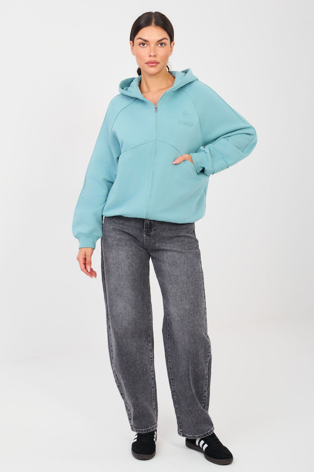 Η γυναικεία casual μπλούζα είναι μια άνετη και πολυδιάστατη επιλογή για καθημερινή χρήση. Κατασκευασμένη από υψηλής ποιότητας μείγμα βαμβακιού και πολυεστέρα, προσφέρει άνεση, απαλότητα και ανθεκτικότητα. Το απλό σχέδιο κάνει την μπλούζα να έχει κλασικό, διαχρονικό χαρακτήρα και προσαρμόζεται εύκολα σε διάφορους συνδυασμούς. Το μοντέλο έχει κανονικό μήκος, μακριά μανίκια και πρακτική κουκούλα, ιδανικό για καθημερινές δραστηριότητες. Το κλείσιμο με φερμουάρ διευκολύνει την τοποθέτηση και τη ρύθμιση, ενώ οι τσέπες αυξάνουν τη λειτουργικότητα. Ένας διακριτικός κεντημένος σχεδιασμός τοποθετημένος στο μπροστινό μέρος, στο ύψος του στήθους στα αριστερά, προσθέτει στυλάτο αξεσουάρ και υπογραμμίζει τον ιδιαίτερο χαρακτήρα της μπλούζας. Ιδανική για αστικά, καθημερινά σύνολα.