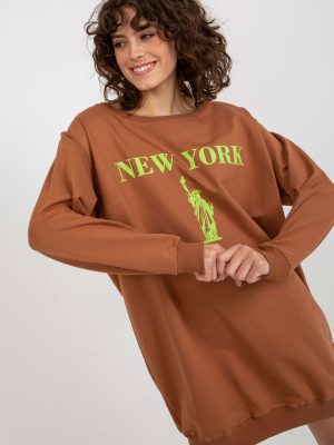 Το γυναικείο oversize φούτερ σε casual στυλ είναι η ιδανική επιλογή για τις γυναίκες που εκτιμούν την άνεση και τη μοντέρνα εμφάνιση. Το φούτερ διαθέτει ένα κυρίαρχο μοτίβο με ένα εντυπωσιακό τύπωμα στο μπροστινό μέρος για μια πινελιά χαρακτήρα. Είναι κατασκευασμένο από υψηλής ποιότητας μείγμα βαμβακιού, πολυεστέρα και ελαστάνης για απαλότητα, ανθεκτικότητα και καλή εφαρμογή. Το μοντέλο με το εκτεταμένο μήκος είναι ιδανικό για καθημερινή χρήση, προσφέροντας άνεση. Τα μακριά μανίκια και η κλασική στρογγυλή λαιμόκοψη τονίζουν τον καθολικό χαρακτήρα της μπλούζας, ενώ η έλλειψη κλεισίματος εγγυάται ελευθερία κινήσεων. Ιδανική με τζιν, κολάν ή casual παντελόνια, αποτελεί must-have σε κάθε γκαρνταρόμπα.