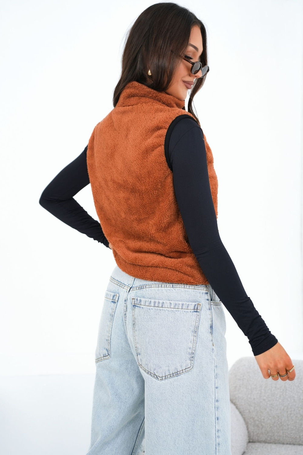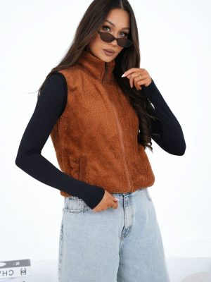 Μια στιλάτη γυναικεία γιλέκα με casual χαρακτήρα, ιδανική για καθημερινή χρήση. Κατασκευασμένη από μαλακό, φλις ύφασμα με κυρίαρχο το πολυεστέρα, που εξασφαλίζει άνεση κατά τη διάρκεια της χρήσης και ευχάριστη αίσθηση σε πιο κρύες μέρες. Το μοντέλο κλείνει με πρακτικό φερμουάρ, διαθέτει άνετες κρυφές τσέπες και μια κομψή γιακά που προστατεύει τον λαιμό από τον άνεμο. Το λείο σχέδιο προσδίδει στη γιλέκα ένα универсál χαρακτήρα, διευκολύνοντας την προσαρμογή της σε πολλές στυλιστικές επιλογές. Το κανονικό μήκος εξασφαλίζει ότι η γιλέκα είναι ιδανική για την εποχή φθινόπωρο-χειμώνας-άνοιξη, τόσο με πουλόβερ όσο και με μπλούζες ή πουκάμισα. Το μοντέλο χωρίς επένδυση είναι ιδανικό για στρώσεις ενδυμάτων.