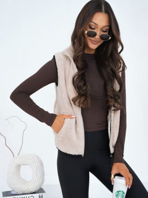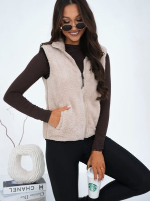 Στυλάτη γυναικεία γιλέκα με κατ’ οίκον χαρακτήρα, ιδανική για καθημερινή χρήση. Κατασκευασμένη από μαλακό, φλις ύφασμα με κυρίαρχη πολυεστέρα, που εξασφαλίζει άνεση κατά την ένδυση και ευχάριστη αίσθηση σε ψυχρές μέρες. Το μοντέλο κλείνει με πρακτικό φερμουάρ, εξοπλισμένο με άνετες τσέπες και κομψό γιακά που προστατεύει τον λαιμό από τον άνεμο. Το λείο σχέδιο δίνει στη γιλέκα έναν καθολικό χαρακτήρα, καθιστώντας την εύκολη στην προσαρμογή σε πολλές στυλιστικές επιλογές. Το κανονικό μήκος διασφαλίζει ότι η γιλέκα θα αποδειχθεί εξαιρετική κατά την περίοδο φθινοπώρου-χειμώνα-άνοιξης, τόσο με πουλόβερ όσο και με μπλούζες ή πουκάμισα. Το μοντέλο χωρίς επένδυση είναι ιδανικό για πολυάριθμα σύνολα.