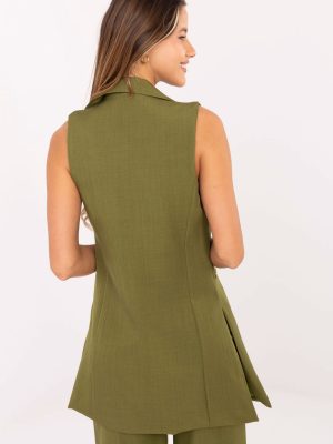 Μια κομψή, μακριά γυναικεία γιλέκο χωρίς κλείσιμο είναι μια στυλάτη βάση για πολλές εμφανίσεις. Φτιαγμένο από υψηλής ποιότητας υλικό που συνδυάζει πολυεστέρα και ελαστάν, εξασφαλίζει άνεση στη φθορά και κομψή εμφάνιση. Το μοντέλο ξεχωρίζει με τα διπλωμένα καπέλα και τις σχισμές στα πλάγια, που προσδίδουν ελαφρότητα στη σιλουέτα και ελευθερία κινήσεων. Ο απλός υφασμάς τονίζει τον πολυδιάστατο χαρακτήρα της γιλέκο, ενώ η επένδυση εξασφαλίζει αισθητική φινίρισμα. Ο χωρίς μανίκια κόψιμο τον καθιστά ιδανικό τόσο για το πουκάμισο, την μπλούζα όσο και για τον λεπτό ζιβάγκο. Ιδανικό για πολλές περιστάσεις, θα είναι χρήσιμο σε επίσημες εμφανίσεις, στη δουλειά και σε κομψές καθημερινές στυλιστικές επιλογές.
