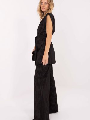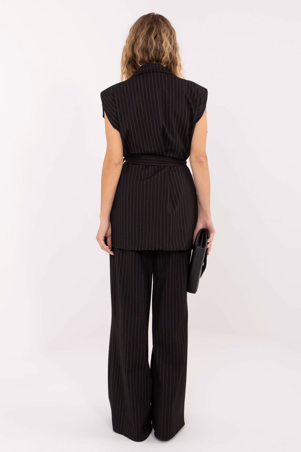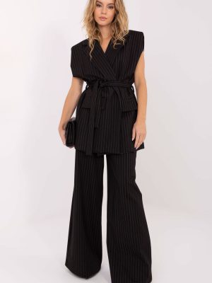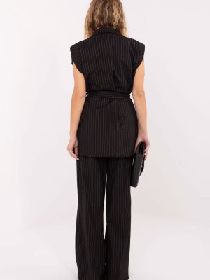 Η στυλάτη γυναικεία γιλέκο από ύφασμα είναι η ιδανική επιλογή για επίσημες περιστάσεις καθώς και για την εργασία, όταν επιθυμείτε να συνδυάσετε την κομψότητα με τη σύγχρονη μορφή. Το σχέδιο με λωρίδες της δίνει λεία, κλασική αίσθηση, ενώ παράλληλα τονίζει το μοναδικό στυλ. Το μοντέλο είναι κατασκευασμένο από υψηλής ποιότητας μείγμα ναυλον, ελαστάνης, βισκόζης και πολυεστέρα, γεγονός που καθιστά το γιλέκο ελαφρύ, άνετο και εξαιρετικά κομψό πάνω στη σιλουέτα. Το κανονικό μήκος και η πιο χαλαρή γραμμή το κάνουν να φαίνεται ελεύθερο και ταυτόχρονα πολύ κομψό. Το γιλέκο δεν διαθέτει παραδοσιακό κλείσιμο, αντ’ αυτού είναι εξοπλισμένο με μια ζώνη για να δένει, επιτρέποντας την προσαρμογή της φόρμας στη σιλουέτα και τη δημιουργία διάφορων παραλλαγών στυλ. Οι ραμμένες μαξιλαρίτσες στους ώμους προσδίδουν ένταση στη δομή, τονίζοντας τη γραμμή των ώμων και δίνοντάς του επαγγελματική και κομψή εμφάνιση. Η εσωτερική επένδυση εξασφαλίζει άνεση κατά τη διάρκεια της φόρεσης και αναβαθμίζει την ποιότητα κατασκευής. Είναι ένα μοναδικό γιλέκο που θα συμπληρώσει άριστα τις κομψές εμφανίσεις, προσθέτοντας τους χαρακτήρα και μια σύγχρονη πινελιά.