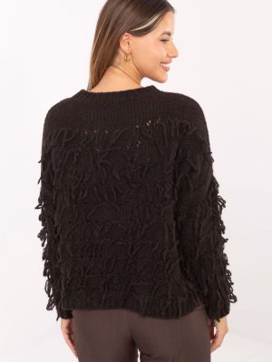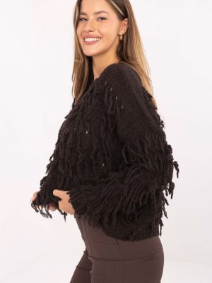 Γυναικείο πουλόβερ boho με καθημερινό χαρακτήρα, κατασκευασμένο από ένα μαλακό και ευχάριστο στην αφή μείγμα πολυακρυλίου, πολυαμιδίου, λάνας και βισκόζης, που παρέχει άνεση και ζεστασιά. Το μοντέλο έχει κανονικό μήκος και μακριά μανίκια, διαθέτει κλασικό, στρογγυλό ντεκολτέ που τονίζει την ελαφρότητα της γραμμής. Η ποικιλόμορφη υφή του υλικού σε συνδυασμό με διακοσμητικές φούντες σε όλη την επιφάνεια του πουλόβερ του δίνει μοναδικό, καλλιτεχνικό χαρακτήρα. Ιδανικό για καθημερινές, χαλαρές στυλιστικές επιλογές σε boho κλίμα.