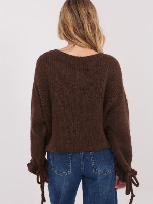 Γυναικείο πουλόβερ με casual χαρακτήρα, ιδανικό για καθημερινές εμφανίσεις και για τη δουλειά. Μοντέλο κανονικού μήκους, κατασκευασμένο από μαλακό και ευχάριστο στην αφή μείγμα ακρυλικών, πολυαμίδης, βισκόζης και μαλλιού, που εξασφαλίζει άνεση στη χρήση και ζεστασιά. Η ομαλή υφή δίνει στο πουλόβερ έναν καθολικό χαρακτήρα, διευκολύνοντας την προσαρμογή του σε διάφορα στοιχεία της γκαρνταρόμπας. Κλασική, στρογγυλή λαιμόκοψη και μακριά μανίκια τονίζουν το διαχρονικό σχέδιο. Διακοσμητές φάσες με κορδόνι στα μανίκια προσθέτουν γυναικεία γοητεία και λεπτή αυθεντικότητα στο σύνολο. Το πουλόβερ δεν έχει κλείσιμο, εξασφαλίζοντας άνεση και ελευθερία στη χρήση.
