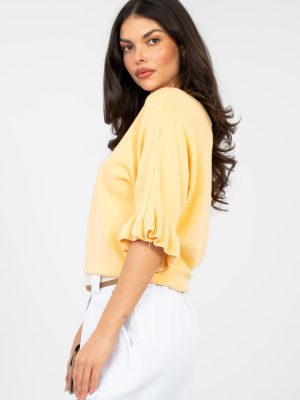 Εκλεπτυσμένος γυναικείος πουλόβερ σε κανονικό μήκος, ιδανικός τόσο για καθημερινή χρήση όσο και για πιο ξεχωριστές περιστάσεις. Κατασκευασμένος από υψηλής ποιότητας μείγμα βισκόζης, πολυεστέρα και νάυλον, προσφέρει άνεση κατά τη διάρκεια της χρήσης και αντοχή. Η λεία σχεδίαση του χαρίζει διαχρονικό χαρακτήρα, ενώ οι λεπτές λεπτομέρειες προσθέτουν γυναικεία γοητεία. Το μοντέλο διακρίνεται για τον στρογγυλό λαιμό και τα μανίκια τρία τέταρτα που καταλήγουν σε λεπτή φούστα, που τονίζουν την κομψότητα και την ελαφρότητα της στυλιστικής επιλογής. Είναι μια εξαιρετική επιλογή για γυναίκες που εκτιμούν την κλασική μόδα σε σύγχρονη εκδοχή.