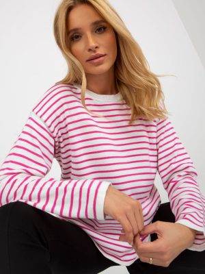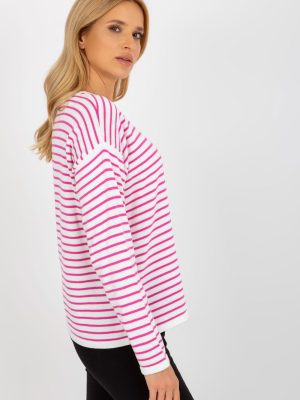 Γυναικείο πουλόβερ σε κλασικό κόψιμο με πολύχρωμες ρίγες, μακριά μανίκια και στρογγυλή λαιμόκοψη.