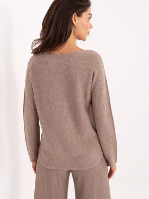 Κάζουαλ γυναικείο πουλόβερ σε κανονικό μήκος, εξαιρετικό για καθημερινή χρήση και για τη δουλειά. Φτιαγμένο από υψηλής ποιότητας μείγμα βισκόζης, πολυεστέρα και νάιλον, συνδυάζει άνεση και αντοχή. Η λεία σχεδίαση το καθιστά ευέλικτο και εύκολο να προσαρμοστεί σε πολλές στυλιστικές επιλογές. Το μοντέλο διαθέτει κλασικό στρογγυλό λαιμό και μακριά μανίκια, κάνοντάς το ιδανική επιλογή για πιο δροσερές μέρες. Το ιδιαίτερο πλεονέκτημά του είναι η διπλής όψης, μπορεί να φορεθεί είτε με την πλευρά που έχει το ορατό ράψιμο προς τα έξω, είτε με την πλευρά που έχει το κρυφό ράψιμο, δίνοντάς σας την ελευθερία να δημιουργείτε διάφορα looks ανάλογα με τη διάθεση και την περίσταση.