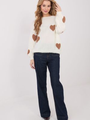 Γυναικείο πουλόβερ με χαλαρό χαρακτήρα, σχεδιασμένο με γνώμονα άνετες καθημερινές εμφανίσεις. Το μοντέλο είναι κατασκευασμένο από μαλακό και ζεστό μείγμα ακρυλικού, μοχέρ και μαλλιού, το οποίο προσφέρει ευχάριστη αίσθηση ακόμα και τις πιο κρύες μέρες. Το πουλόβερ ξεχωρίζει για τον εντυπωσιακό σχεδιασμό με καρδιές, δίνοντάς του θηλυκό και μοντέρνο χαρακτήρα. Η τυπική του μήκος, η κλασική στρογγυλή λαιμόκοψη και τα μακριά μανίκια εγγυώνται άνεση και ευχρηστία. Τα φουσκωτά μανίκια προσθέτουν μια στυλιζαρισμένη πινελιά που δίνει στο σύνολο ελαφρότητα και πρωτοτυπία. Το πουλόβερ ταιριάζει τέλεια σε καθημερινές εμφανίσεις με τζιν ή φούστα.