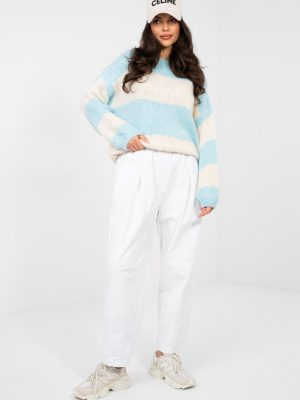 Το μοντέρνο γυναικείο πουλόβερ σε oversized στυλ είναι μια ιδανική πρόταση για καθημερινές, casual εμφανίσεις. Η χαλαρή γραμμή προσφέρει ελευθερία κινήσεων και άνεση στη φορεσιά, ενώ το κανονικό μήκος καθιστά το μοντέλο ιδανικό τόσο για παντελόνια όσο και για φούστες. Το κυρίαρχο σχέδιο με ρίγες προσδίδει στο πουλόβερ έναν διαχρονικό χαρακτήρα και το καθιστά τέλεια εναρμονισμένο με την αστική στυλ. Ο στρογγυλός λαιμός και τα μακριά μανίκια τονίζουν την κλασική γραμμή, ενώ η απουσία κλεισίματος του προσδίδει έναν καθολικό, χαλαρό χαρακτήρα. Το μοντέλο είναι κατασκευασμένο από ευχάριστη στην αφή μίξη ακρυλικού, πολυαμιδίου, μαλλιού και βισκόζης, που εγγυάται απαλότητα, θερμική άνεση και ανθεκτικότητα. Είναι μια εξαιρετική επιλογή για καθημερινή χρήση, άνετη, κομψή και εύκολη στην συνδυαστικότητα με τα αγαπημένα κομμάτια της γκαρνταρόμπας.
