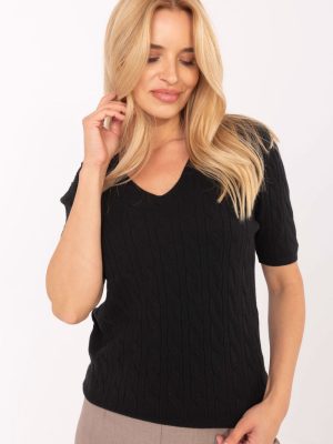 Γυναικείο casual πουλόβερ κατασκευασμένο από ελαστικό μείγμα βισκόζης, πολυεστέρα και πολυαμιδίου, που παρέχει άνεση και ελαφρύτητα κατά τη διάρκεια της χρήσης. Η V-λαιμόκοψη προσφέρει στη σιλουέτα μια διακριτική κομψότητα, ενώ το κοντό μανίκι καθιστά το πουλόβερ ιδανικό για καθημερινές εμφανίσεις καθώς και για τη δουλειά. Η ποικιλία υφής του υλικού προσθέτει ενδιαφέρον στον συνολικό χαρακτήρα του, ενώ το στάνταρ μήκος διευκολύνει τον συνδυασμό του πουλόβερ με διάφορα παντελόνια και φούστες. Μοντέλο χωρίς κούμπωμα, απλό και ευέλικτο, ιδανικό για casual και επαγγελματικά outfits.
